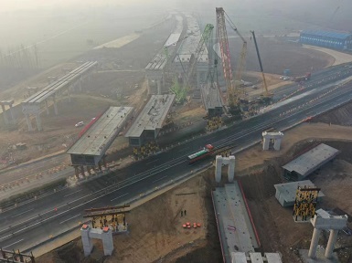 开云网页版方唐高速跨兰南高速钢箱梁项目顺利完成跨路施工吊装