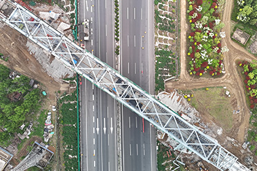 白马河钢桁梁项目位于青岛市黄岛区,桥梁总用钢量约1500吨,跨度120米,采用拖拉式顶推施工。 -