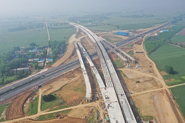 兰原高速封丘潘店互通立交钢箱梁工程工程位于新乡市封丘县潘店镇,钢结构制作、安装量5700吨。 -